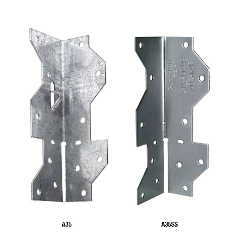 The versatile A34 and A35 Reinforced Angle Brackets provide a way to make a straight angle of 90° connection. The A35 Angle Bracket’s exclusive bending slot allows instant, accurate field bends for two and three-way ties. Balanced, completely reversible design permits the A35 to secure a great variety of connections.